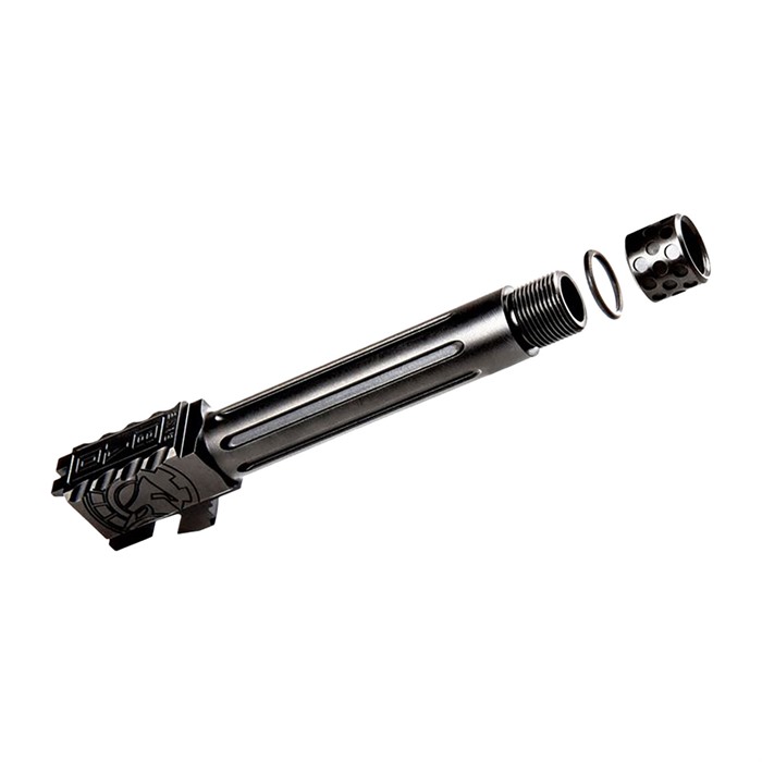 ONE:1 utilizes revolutionary machining process where one machine comprehensively machines every part of the barrel from the beginning to the end. The process includes the ultra-precise single point cut rifling where the rifling is done with almost a hundred minuscule cuts. This method does not introduce stress to the barrel and no stress relieving is necessary after rifling. Perfect concentricity between the chamber, bore, and rifling. This process also yields uniform twist rate and ultra-accurate rifling grooves with a deviation of less than .0001in from groove depth to groove depth. Material: Heat Treated 416R Stainless Threading Options: None or 1/2 x 28 Thread Fluting: Straight Finish: Melonite QPQ Black Nitride or Stainless Steel Twist Rate: 1:10 Crown: 11° Target Crown Length: 4.5” O.A.L. W/O Thread Protector Fits: GLOCK 19~ / Gen 3, 4 & 5 / Glock 19X~ Made In USA Rated for +P ammunition Threaded Version Comes with a SABERTUBE® Dimpled Patterned Thread Protector with O-Ring.
