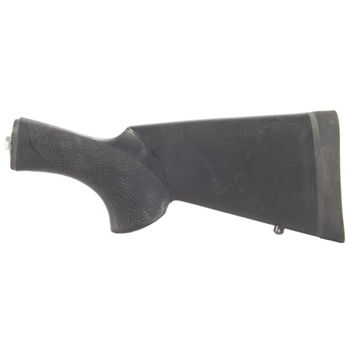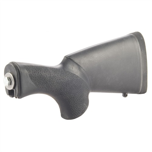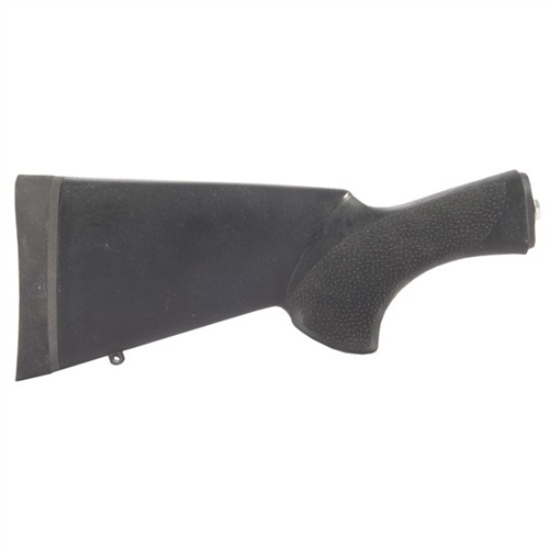 Fiberglass-reinforced, polymer, shotgun stock provides synthetic-stock durability and is overmolded with rubber for a sure grip every time you grab your gun. Rubber is pebble-textured in the gripping areas. Includes recoil-cushioning, butt pad and an integral, sling-swivel stud. Available in standard, factory length of pull or in ShortShot, 12" length of pull for use with body armor or for smaller shooters.