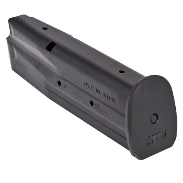 Detta är ett originalmagasin för Sig Sauer P227 som rymmer 10 patroner, perfekt för användning i områden med begränsningar på magasinkapacitet.