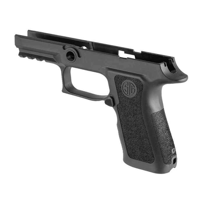 Install your P320/P250 firing control unit into this Grip Module Assembly to convert to a P320 or P250 compact chambered in 9mm Luger, .357 SIG, .40 S&W with your selected grip size. Requires the 9mm Luger, .357 SIG and .40 S&W slide and barrel. Designed to function with compact and sub-compact slide. Attention: Not designed for the full-size P320. Will not cover the full-size dust cover leaving the recoil spring and guiderod exposed. Please Note - The X-Series Grip Modules will not work with magazines that have "SIG SAUER" on the baseplate. They are compatible with the baseplates that have the SIG Mark on it.