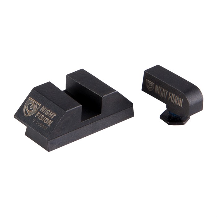 Night Fision’s Perfect Dot night sights for Glock® pistols offer a revolutionary new design that with brighter, more vivid, aiming dots. Like all night sights, Perfect Dots use self-illuminating Tritium to get the "always on" glow that makes them so effective. The difference is PDs have 30% more Tritium, so they are unusually bright. The Tritium insert isn’t surrounded by a painted-on ring, but rather one made of a daylight fluorescing material that produces optimum visibility in daylight. The result is what the Night Fision folks have dubbed the "Perfect Dot". The Perfect Dot provides maximum visibility in both nighttime AND daylight conditions, so when the pressure is on, you’ll locate your sights more quickly and get them on target - fast. A new mounting system holds the Tritium vial more securely to protect it from the ravages of unexpected knocks and dings. Front sight is brighter than rear, encouraging instinctive "Front Sight Focus" to keep your eyes on the target Rugged machined 4140 steel housings Matte black Nitride finish - excellent wear- and corrosion-resistance Variety of front dot colors & rear notch configurations to choose from (see below) Suppressor Height sights also available Sold as front/rear pairs only We are offering Perfect Dot sights to fit standard (G17-size) / compact frame (G26-size) Glock pistols in the factory heights, as well as Suppressor Height sights for use on Glocks fitted with sound suppressors. A separate models is specifically for the Glock 42 / 43. Other options: Square or U-shaped rear notch, choice of White, Orange, or Yellow outline around front sight. Rear sight options: plain Black (no inserts), Tritium dots (Clear) on either side of notch, or Tritium dots enhanced with White outline. Read the listings below carefully before ordering. With so many options available, you can fit your Glock with a night sight configuration that’s perfect for you. Another reason why they’re called "Perfect Dot" sights!
