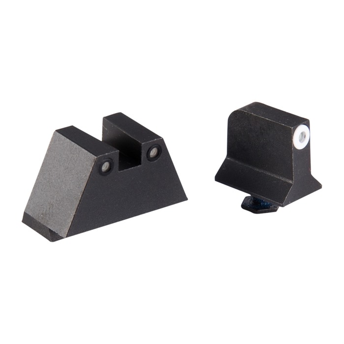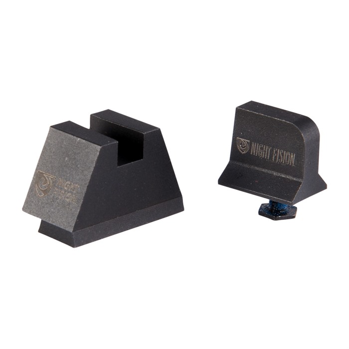 Night Fision’s Perfect Dot night sights for Glock® pistols offer a revolutionary new design that with brighter, more vivid, aiming dots. Like all night sights, Perfect Dots use self-illuminating Tritium to get the "always on" glow that makes them so effective. The difference is PDs have 30% more Tritium, so they are unusually bright. The Tritium insert isn’t surrounded by a painted-on ring, but rather one made of a daylight fluorescing material that produces optimum visibility in daylight. The result is what the Night Fision folks have dubbed the "Perfect Dot". The Perfect Dot provides maximum visibility in both nighttime AND daylight conditions, so when the pressure is on, you’ll locate your sights more quickly and get them on target - fast. A new mounting system holds the Tritium vial more securely to protect it from the ravages of unexpected knocks and dings. Front sight is brighter than rear, encouraging instinctive "Front Sight Focus" to keep your eyes on the target Rugged machined 4140 steel housings Matte black Nitride finish - excellent wear- and corrosion-resistance Variety of front dot colors & rear notch configurations to choose from (see below) Suppressor Height sights also available Sold as front/rear pairs only We are offering Perfect Dot sights to fit standard (G17-size) / compact frame (G26-size) Glock pistols in the factory heights, as well as Suppressor Height sights for use on Glocks fitted with sound suppressors. A separate models is specifically for the Glock 42 / 43. Other options: Square or U-shaped rear notch, choice of White, Orange, or Yellow outline around front sight. Rear sight options: plain Black (no inserts), Tritium dots (Clear) on either side of notch, or Tritium dots enhanced with White outline. Read the listings below carefully before ordering. With so many options available, you can fit your Glock with a night sight configuration that’s perfect for you. Another reason why they’re called "Perfect Dot" sights!