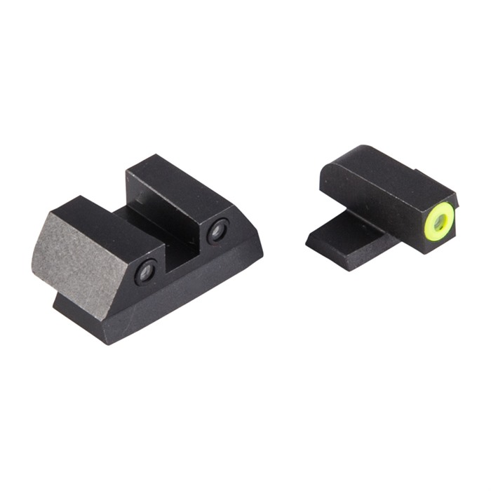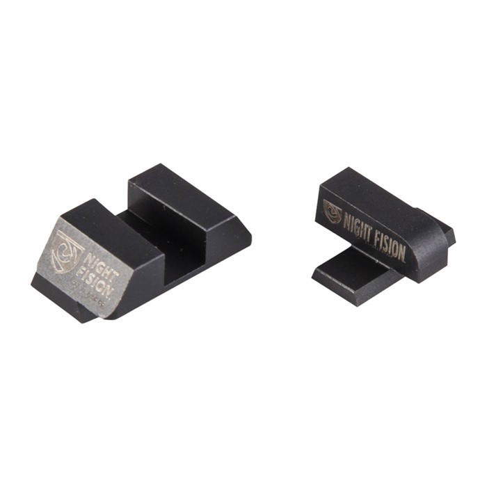 Perfect Dot night sights for SIG Sauer P-series pistols from Night Fision use proven Tritium illumination technology in the front sight with a plus: 30% more Tritium for a much brighter, easier-to-locate dot! Paired with a plain black rear sight, the ultra-bright front sight grabs the eye’s attention, encouraging instinctive "Front Sight Focus," so your eyes stay on the target. The Tritium insert isn’t surrounded by a painted-on ring, but rather one made of a daylight fluorescing material that produces optimum visibility in daylight. The Night Fision folks call it the "Perfect Dot," which provides maximum visibility in both nighttime AND daylight conditions. When the pressure is on, you’ll locate your SIG’s sights quickly - and get them on target fast. Variety of front dot colors & rear notch configurations to choose from (see below) Rugged machined 4140 steel sight bodies - far stronger than the factory plastic Tough black Nitride finish for outstanding wear- and corrosion-resistance Tritium vial has extra protection from knocks & dings Sold as front/rear pairs only Night Fision Perfect Dot night sights for SIG Sauer P-series pistols are available in two sizes, one to fit in SIGs chambered in 9mm Luger (9x19mm) / .357 SIG, the other for the .40 S&W / .45 ACP chambered P-series. Options include a choice of Square or U-shaped rear notch on the plain black rear sight, with a choice of Orange or Yellow outline around the Tritium front dot. You can fit your SIG with a "Perfect Dot" night sight configuration that’s perfect for your needs.