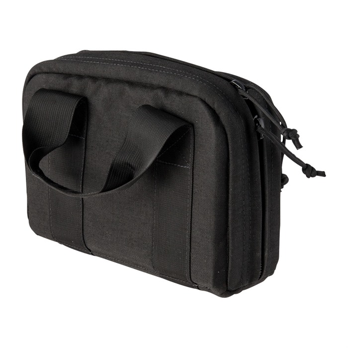 Denna kompakta, men fullt utrustade pistolväska rymmer handeldvapen eller annan utrustning. Med fem elastiska magasinöppningar och en helt Velcro-loopad innerpanel är det enkelt att transportera reservmagasin, pistol, dämpare eller annan utrustning till skjutbanan.