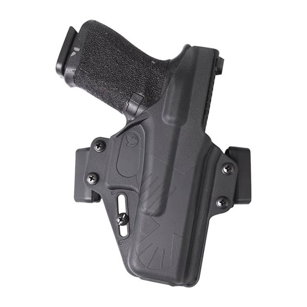 Kroppsnära kurvaturen av detta holster uppnås med hjälp av modulära bältesöglor. Varje holster inkluderar tre par av 1,5” bältesöglor (LH 10 graders lutning, RH 10 graders lutning och ambi 0 graders lutning), vilket gör att användaren kan konfigurera det ambidextrösa holsterkroppen för vänster- eller högeranvändning, med antingen 0-graders eller 10-graders lutning.