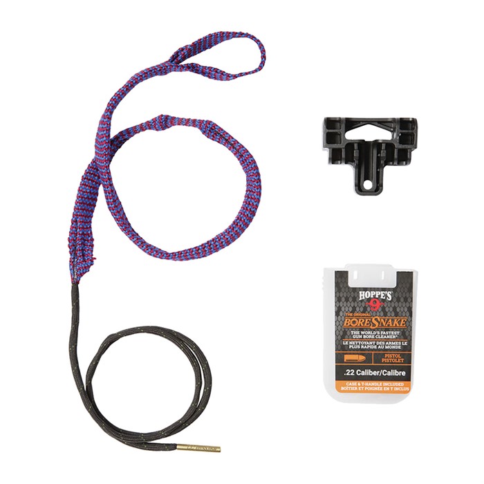 Pistol Bore Snake är tvättbar och återanvändbar, och den lätta designen viks snyggt ihop i den nya "den" bärväskan för enkel förvaring.