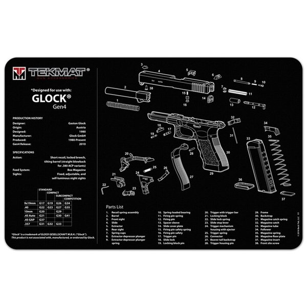 PISTOL GUN MATS, TEKMAT PISTOL GUN CLEANING MAT för GLOCK 42/43 i svart är en perfekt lösning för att hålla din pistol i toppskick under rengöring och reparation.