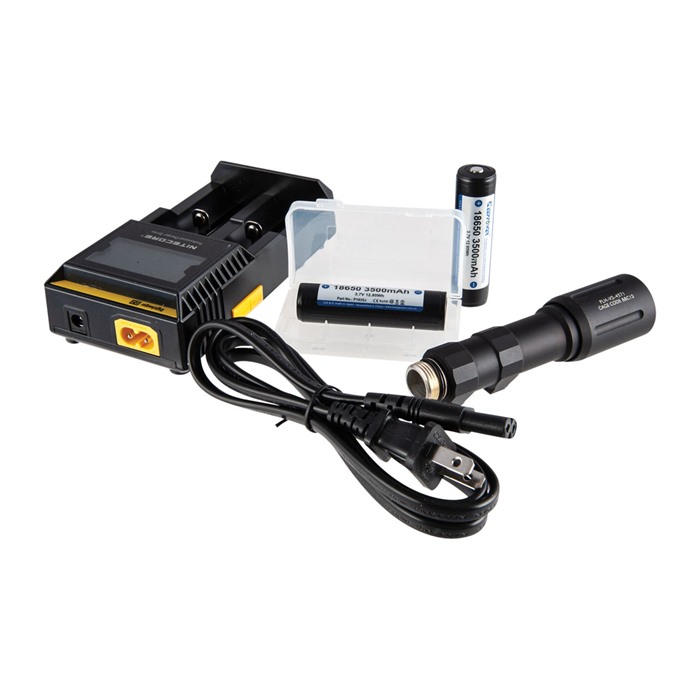 Denna Modlite PLHv2 18650 vapensystemlampa innehåller ett PLHv2-ljushuvud, en 18650-kropp och alternativet att välja med eller utan en tail cap. Paketet inkluderar även ett KeepPower 3500mAh 18650-batteri och en XTAR MC2-laddare. (Artikel 100-042-503 inkluderar inte en tail cap eller laddare.)