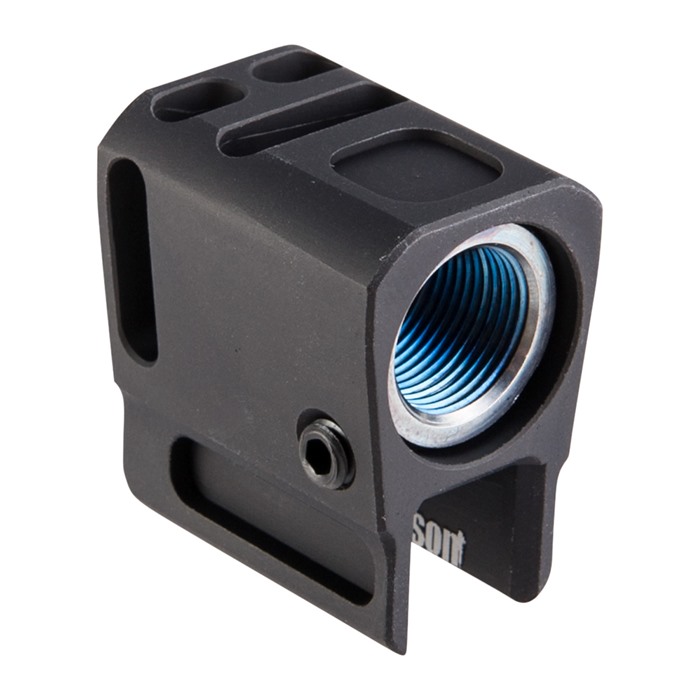 Samson Pocket Comp för M&P Shield och Shield 2.0 9mm är designad för att passa 1/2 x 28 gängade pipor och kan installeras på några minuter utan behov av en vapensmed. Den unika designen skyddar gängorna på pipan, vilket skiljer den från konventionella kompenserare.