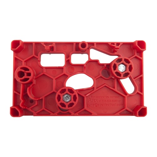 Apex-logotypen och kontaktinformation är gjutna direkt i blockets kropp för enkel identifiering och tillgång till Apex's tekniska supportpersonal. Armorer's Tooling Plate är designad för att fästas direkt på undersidan av Apex Polymer Armorer's Block, vilket ger en upphöjd yta för arbete med dina M&P och Glock-pistoler. Verktygsplattan har snap locks och spår för att hålla 1/8" custom roll pin punch och 1/16" allen wrench. Gummifötter greppar arbetsytan, vilket möjliggör ett stabilt grepp under arbete. En ringmagnet på undersidan av plattan förhindrar att magnetiska delar rymmer.
