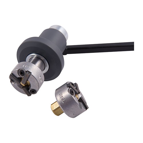 Handdrivaren med en fjäderbelastad adapter erbjuder ett snabbt och effektivt sätt att bearbeta mynningarna utan behov av en svarv. Kitets expanderbara piloter säkerställer exakt justering av ansiktsskäret med borren. Setet inkluderar två ansiktsskärare för 0° eller 11° kronor, var och en med precisionsslipade trebladiga insatser som snabbt och enkelt tar bort det tuffaste materialet och ger en perfekt kvadratisk mynning.