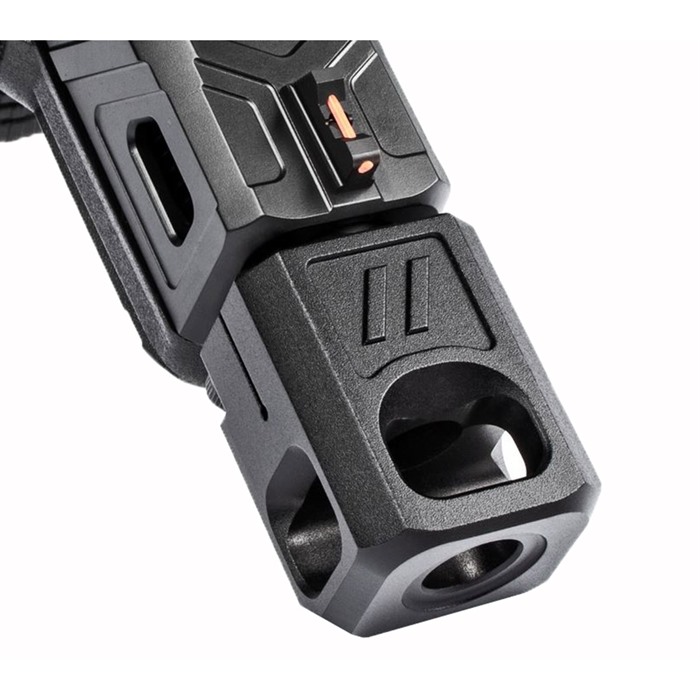 Varje Zev Glock V2 PRO Compensator bygger på framgången av företagets ursprungliga kompenseringsdesign genom att erbjuda en förstärkt guide-rod kanal, konturerade portar och ett monteringssystem som inte kräver tråd-låsande förening för en säker och tight passform.