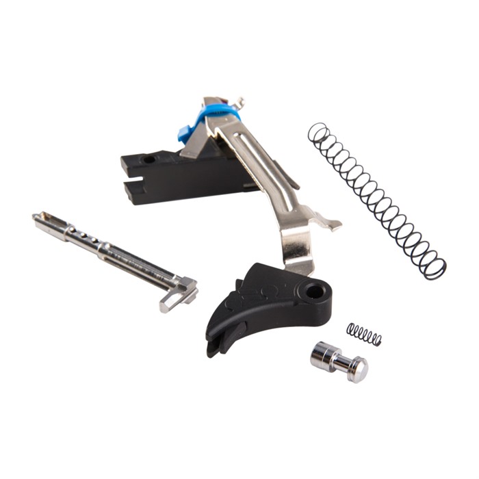 Zev börjar med sin egen avtryckare, avtryckarstång, avtryckarblock, utdragsmekanism, koppling, avtryckarfjäder, en lättviktig avtryckarpinne i rostfritt stål, plus säkerhetsplunger och fjäder för att förfina avtryckarens drag. De inkluderar också en reducerad kraft för avtryckarfjädern för att producera en lättare känsla av avtryckaren för tävling, samt den fabriksviktade avtryckarfjädern för dagligt bärande och tjänstebruk.
