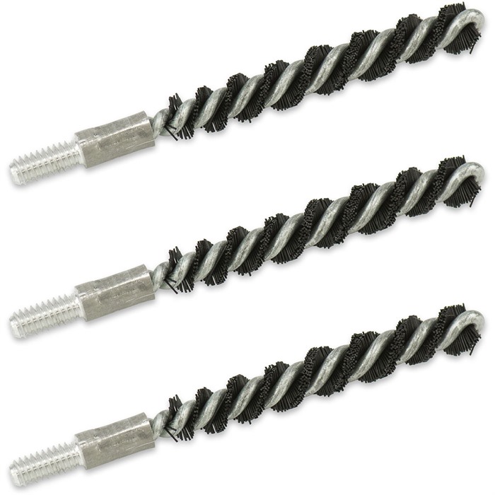 667739171731 Bore Tech förstår behovet av nylonborstar av premiumkvalitet, vilket är anledningen till att de har konstruerat dessa dubbeltrådiga Proof-Positive Nylonborstar som har överlägsen konstruktion och material. Dessa borstar har dubbelt så många borststrån som konkurrerande märken för att fördubbla skrubbhandlingen och förkorta rengöringsprocessen. De har överdimensionerade borststrån för ökad styrka, samt kärnor och kopplingar utan mässing som förhindrar att kopparbeläggning syns i dina pipor. Borstarna för .17 och .20 kaliber är 1" kortare i längd för att minska kraften som behövs för att trycka borsten genom och för att förhindra skador på pipan. För bästa resultat, använd Proof-Positive Nylonborstar tillsammans med snabbverkande kopparrengöringsmedel som Bore Techs Eliminator och CU+2 Copper Remover.Utgått från Brownells