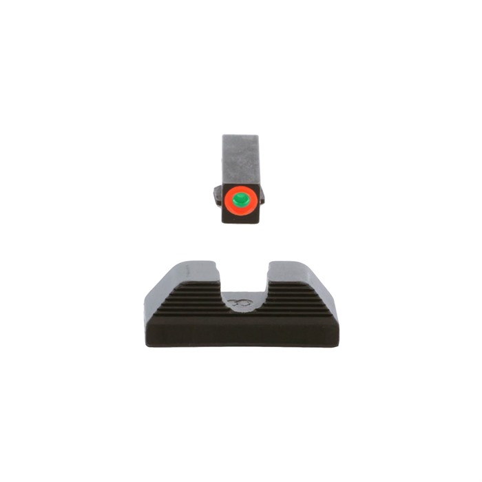 AMERIGLO® Protector Sights are designed for quicker front sight acquisition and concentration on the front sight blade. The black, serrated rear sight reduces glare and offers assistance in one-hand slide manipulations, while the front sight offers a tritium illumination and a ProGlo outline in LumiGreen or orange for an enhanced aim point. Ideal for any conceal carry or personal defense weapon. Fits: Glock® 42, 43, 43X, 48 SPECS Fits Model: 42,43,43X, 48 Fits MOS Slide: Yes Front Sight Style: Tritium Front Sight Finish: Case Hardened Front Tritium Color: Green Front Outline Color: Orange Front Blade Width: 0.140 in. (3.56mm) Front Blade Height: .180 in. (4.57mm) Rear Sight Style: Serrated Rear Notch Shape: U-Notch Rear Sight Finish: Case Hardened Rear Blade Height: 0.168 in. (4.27mm) Overall Rear Height: .256 in. (6.5mm) Rear Notch Width: 0.165 in. (4.19mm)