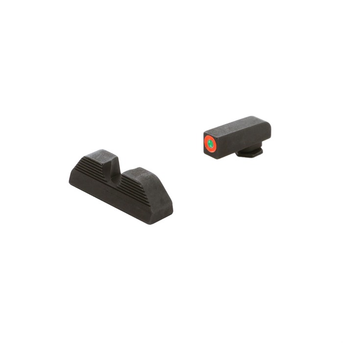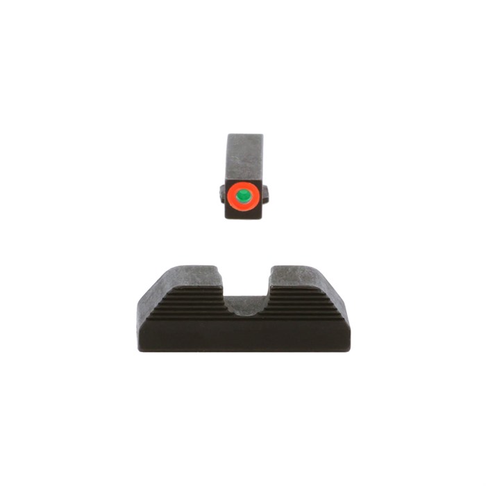 AMERIGLO® Protector Sights are designed for quicker front sight acquisition and concentration on the front sight blade. The black, serrated rear sight reduces glare and offers assistance in one-hand slide manipulations, while the front sight offers a tritium illumination and a ProGlo outline in LumiGreen or orange for an enhanced aim point. Ideal for any conceal carry or personal defense weapon. Fits: Glock® Gen 1-4 9mm/.40/.380, Gen 5 10mm/.45 SPECS Fits Make: Glock® Fits Model: Gen 1-4 9mm/.40/.380, Gen 5 10mm/.45 Fits MOS Slide: Yes Front Sight Style: Tritium Front Sight Finish: Case Hardened Front Tritium Color: Green Front Outline Color: Orange Rear Notch Width: 0.165 in. (4.19mm) Front Blade Width: 0.140 in. (3.56mm) Front Blade Height: 0.165 in. (4.19mm) Rear Sight Style: Serrated Rear Notch Shape: U-Notch Rear Sight Finish: Case Hardened Rear Blade Height; 0.176 in. (4.47mm) Overall Rear Height: 0.256 in. (6.5mm)