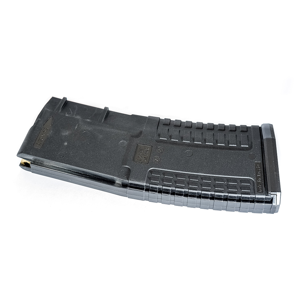Magasinet är designat för att rymma 30 skott. Utöver den grova ytan är de yttre väggarna täckta med ett mönster som förhindrar att magasinet glider ur händerna. Det är enkelt att demontera magasinet. Med en försänkt utlösningsknapp på baksidan kan du lätt ta bort det och få tillgång för rengöring och underhåll.