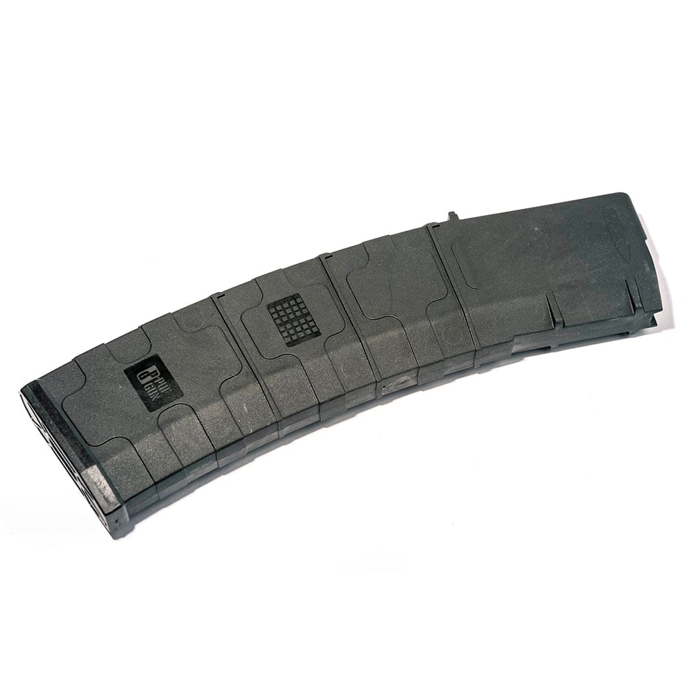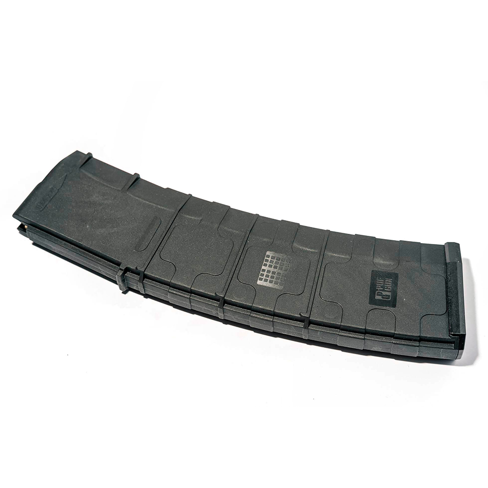 Magasinet är designat för att rymma 45 skott. Utöver den grova ytan är de yttre väggarna täckta med ett mönster som förhindrar att magasinet glider ur händerna. Det är enkelt att demontera magasinet tack vare den sänkta utlösningsknappen på baksidan. Du kan enkelt ta bort det för att få tillgång till rengöring och underhåll.