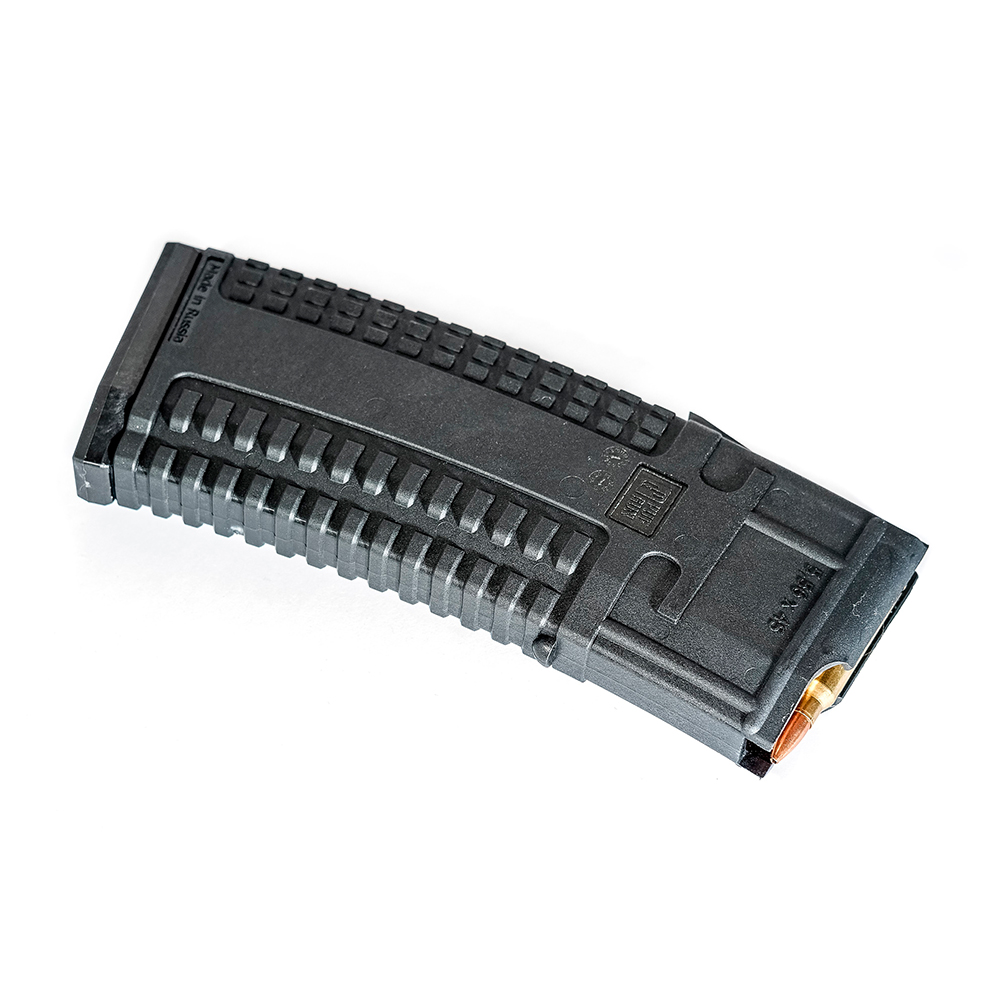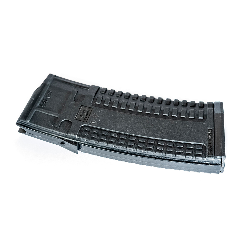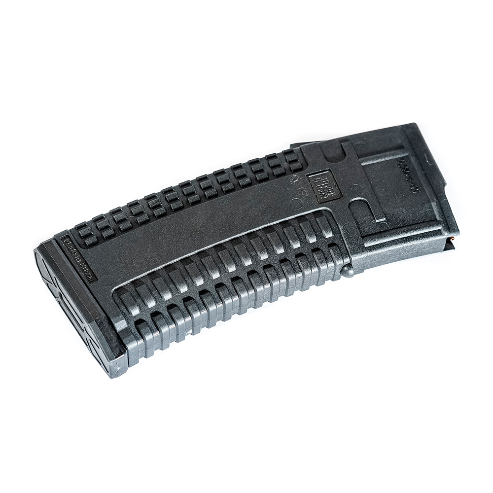 Magasinet är utformat för att rymma 30 skott. Förutom den grova ytan är de yttre väggarna täckta med ett mönster som förhindrar att det glider ur händerna. Magasinet är enkelt att demontera. Den sänkta frigöringsknappen på baklocket gör att du enkelt kan ta bort det och få tillgång för rengöring och underhåll.