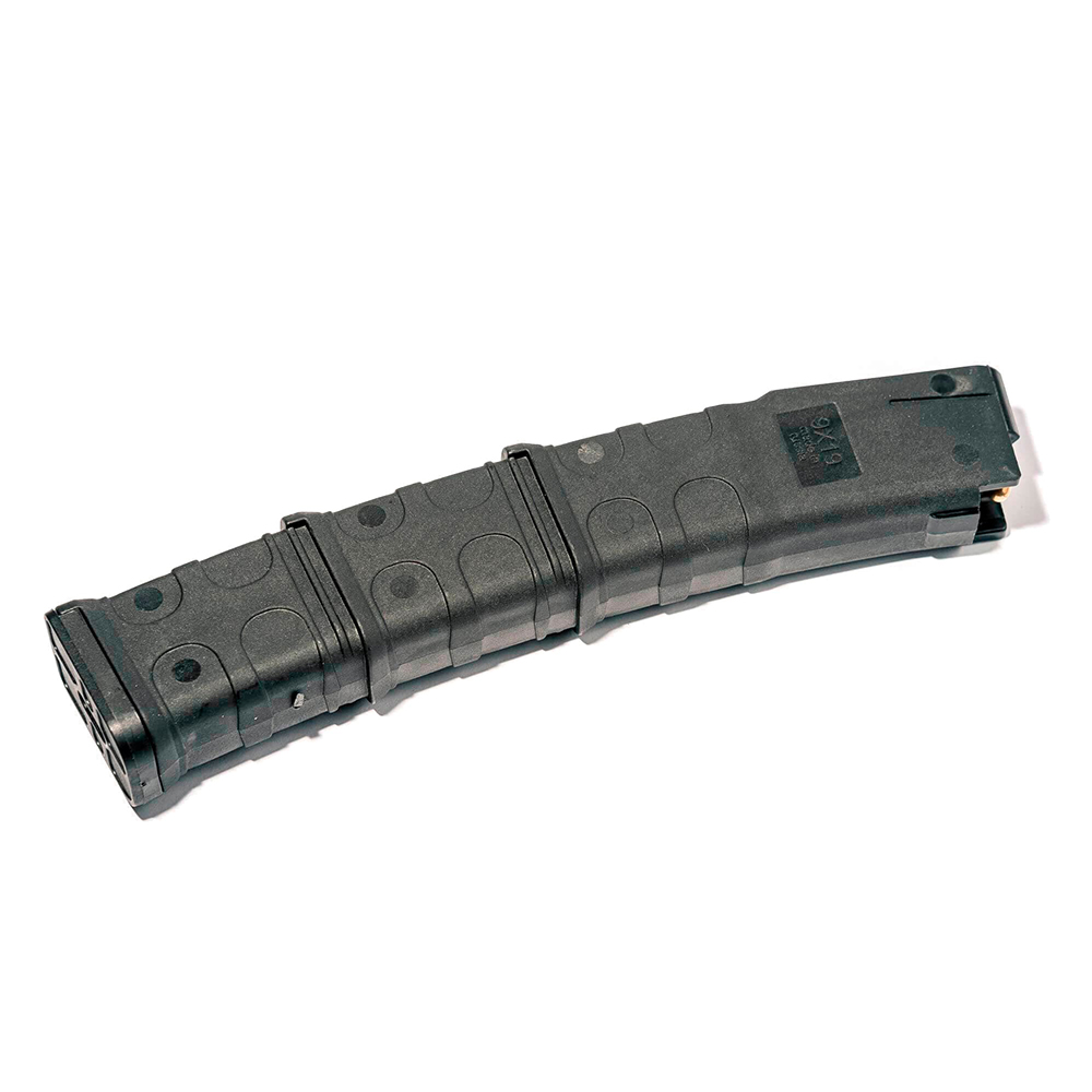 PUFGUN SAIGA - 9MM LUGER MAGAZINE 30 ROUNDS är det perfekta tillbehöret för din Saiga. Detta magasin är utformat för att rymma 30 skott, men kan enkelt reduceras till 20 eller 10 skott genom att justera höljet under kanten av baklocket.