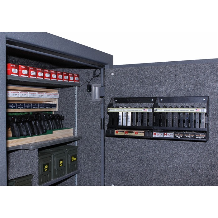 Förvara och organisera dina pistolmagasin och ammunition på ett säkert sätt med PISTOLMAGHOLDER. Den har justerbara avdelare med 60 justeringsspår och rymmer både laddade och oladdade magasin, oavsett om de är i polymer eller stål, samt enkla eller dubbla staplar. Idealisk för de flesta standardpistolmagasin från .22 till .45 kaliber. Magasinets rundräkningsindikatorfönster är lätt synliga.