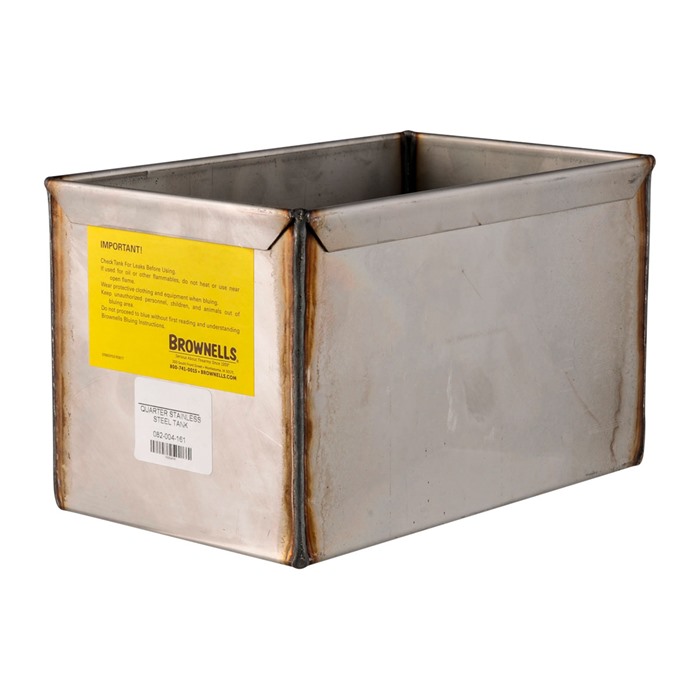 The perfect size for bluing small items and most pistols. Due to its small size one can easily blue using a camping stove instead of firing up the large tanks.