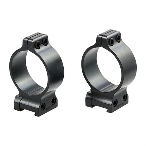 SPECS: Steel, blue, satin finish or stainless steel (SS), natural finish. Models available for 1 or 30mm diameter scope tubes. Ring heights measured from top of base to bottom of ring. Low - .300 (7.62mm). Medium - .400 (10.16mm). High - .500 (12.7mm). X High - .600 (15.2mm). Fit Talley bases only. Available in pairs.
