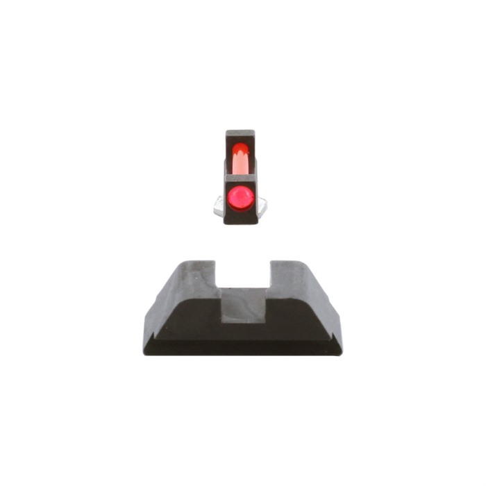 Range Series iron sights from AMERIGLO® are designed for every day concealed carry pistols, offering rugged, simple, effective designs that work. They are designed for speed and accuracy with a .115"" front sight blade paired with a perfect-width rear notch. SPECS Fits Make: Glock® Fits Model: Gen 5 9mm/.40 Fits MOS Slide: Yes Front Sight Style: Red Fiber Optic Front Sight Finish: Case Hardened Front Blade Width: 0.115 in. (2.92mm) Front Blade Height: 0.180 in. (4.57mm) Rear Sight Style: Flat Black Rear Notch Shape: Square Rear Sight Finish: Case Hardened Rear Blade Height: 0.176 in. (4.47mm) Overall Rear Height: 0.256 in. (6.5mm)