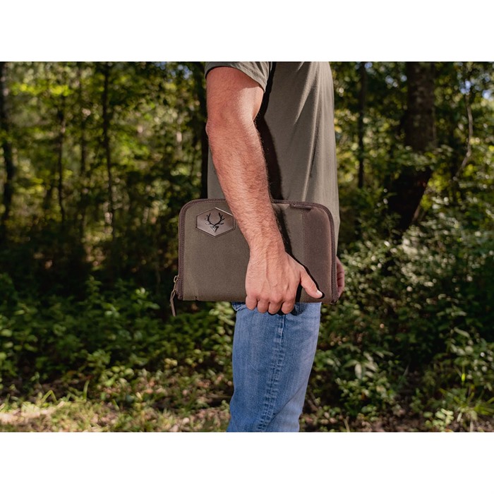 RAWHIDE WAXED CANVAS PISTOL RUG Take your hunting gear to the next level with the Rawhide Waxed Canvas Pistol Case, a true reflection of top-tier quality, timeless style, and unmatched durability. Meticulously crafted from rugged 24 oz. cotton duck waxed canvas, this case combines a cool aesthetics with outstanding protection for your prized firearm. Featuring antique brass zippers and a leatherette logo patch, this case exudes a vintage charm that adds a touch of elegance to your hunting gear. On the inside, the plaid flannel lining does a fantastic job of protecting your firearm's finish, shielding it from bothersome scratches and ensuring it stays in top shape. Plus, with the heavy gauge interior foam padding, your pistol remains snug and secure, no matter how challenging the hunting trail gets. This pistol case offers ultimate convenience without sacrificing functionality. Let's not forget the waxed canvas exterior – not only does it rock a classic look, but it also boasts exceptional weather resistance, making it the ideal companion for all your hunting escapades, rain or shine. Elevate your gear with the Rawhide Waxed Canvas Pistol Case and enjoy the perfect fusion of expert craftsmanship, timeless style, and unbeatable protection. Get ready to make a statement with a gun case that pays homage to the rich heritage of hunting while keeping your firearms safe and stylish. FEATURES: Durable waxed cotton canvas construction Antique brass zippers Leatherette logo patch Plaid flannel lining to protect your firearm’s finish Heavy gauge interior foam padding for maximum impact resistance SPECIFICATIONS: Exterior Dimensions: 8"- 8.5"L X 6.45"H /12"- 12.00" L X 8.25" H 12": 11.00" Interior Storage is perfect for large frame sized pistols 8" : 7.00" Interior Storage is perfect for large frame sized pistols