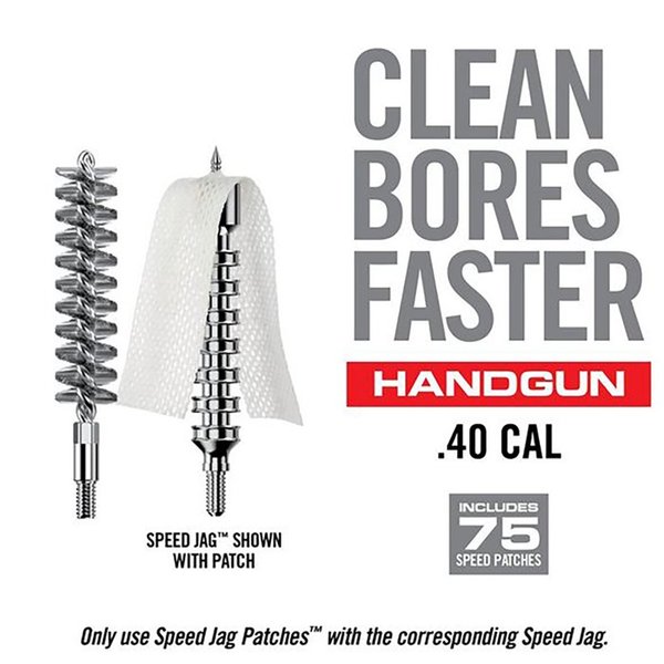 Den förlängda Speed Jag har flera kompressionsringar längs hela jagens längd. Bore-Max Speed Jag och Patches är noggrant dimensionerade för att ge optimal kompression och kontakt för att torka av den inre ytan av borren. De är täta längs hela längden, men ändå relativt lätta att trycka igenom.