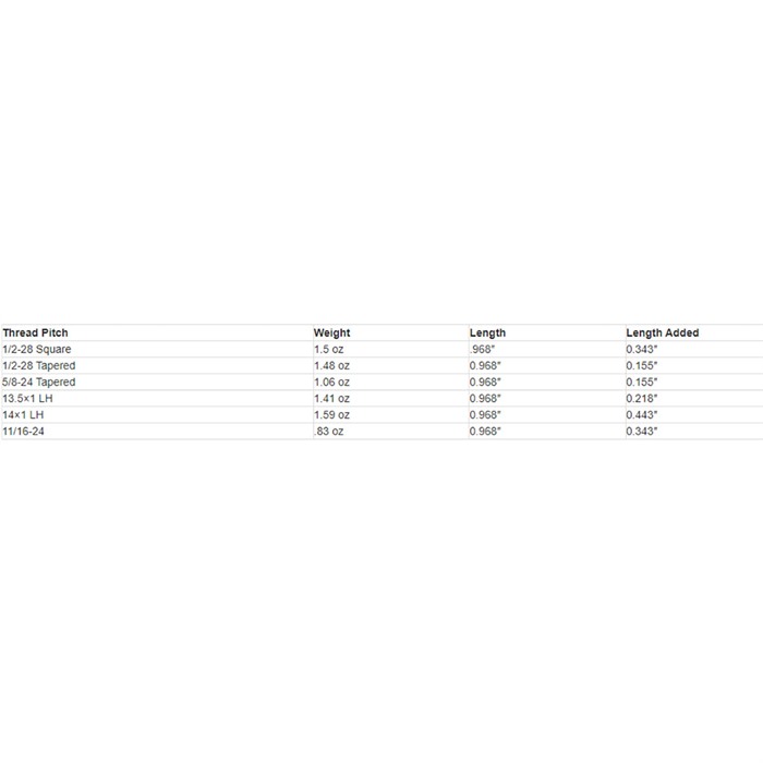 850035804643 MINI MUZZLE BRAKES Använd alltid en justeringsstång för att säkerställa att hela systemet är korrekt inställt. Se till att alla ytor är rengjorda och att muzzle-enheten har dragits åt och Rockset till pipan. Användning på en Q kan ogiltigförklara din garanti, var medveten om detta. Dra åt muzzle-enheten till cirka 15-25 ft lbs. Se till att muzzle-enheten är vinkelrät mot axeln. När du sätter ljuddämparen på muzzle-enheten, se till att gängorna och konerna är rena. Dra åt ljuddämparen till 10 ft lbs. Säkerställ justeringen. Njut. EGENSKAPER: 17-4 PH H900 Atlas och Atlas XL Kompatibel Plan B Kompatibel Atlas Adapter Överdragning Cirka 0.050″ Atlas XL Adapter Ingen Överdragning Svart Nitride Yta (67 HRC Ytbehandling) Shimar Ingår InteLevernastid ca. 14-21 dagar.