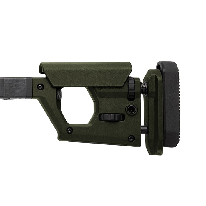 The Magpul Pro 700L Rifle Chassis is an uncompromising, full featured precision rifle chassis for long action Remington 700 and Remington 700-footprint rifles. The Pro 700L combines innovative engineering, precision machining, Mil-Spec quality finishes, and an extensive list of purposeful design features with complete adjustability to provide demanding end users with the most comprehensive available precision rifle platform solution for true out of the box performance. Based on a full billet aluminum skeleton and clad in Magpul polymer for environmental comfort, noise mitigation, and ergonomics, the Pro 700L is also fully ambidextrous. Capable of fitting both right and left-handed actions with the simple swap of a bolt-cutout plate, and with a reversible cheek riser and reversible hinge on the folding version, “lefties” haven’t been “left out.” MAG1002 PRO 700L - FOLDING STOCK IS SUPPLIED WITH THE PRO FHA - FOLDING HINGE ADAPTER (MAG999) INSTALLED MAG1003 PRO 700L - FIXED STOCK IS SUPPLIED WITH THE PRO FSA - FIXED STOCK ADAPTER (MAG998) INSTALLED Type III hard anodized machined 6061-T6 billet aluminum V-bedding block, body, adjustment knobs and forend with high strength injection molded polymer body covers optimally placed for comfort and aesthetics Ambidextrous bedding block can be changed by swapping the QD sling swivel plate and bolt retainer inserts for left or right hand actions using a 1/8” hex wrench A Magpul Pro NVM – Night Vision Mount clip-on mounting rail solution is available Overall LOP adjustment range is 13.25” – 15.125” Butt-pad height can be adjusted up 1.33” and down .90” and is adjustable left or right for a total of 5 degrees Comb height adjustment has a 1" range with a secondary locking knob to eliminate movement in the cheek riser Cheek riser features a 3-position fore/aft adjustment of +.375", 0" and -.375" which can also be changed for left or right side usage using only a common hex wrench Injection molded polymer grip with 5 degree forward edge sweep and enlarged palm swell with 7 degree aft edge sweep for enhanced user comfort combined with a .75" fore/aft adjustment range using a common hex wrench. Additional grip option included with a more aggressive sweep and enlarged palm swell for the shooter that is more inclined to a less vertical grip interface (8 degree forward / 20 degree aft edge sweep) Durable cast steel rotation limited QD sling swivel mounts with Melonite finish fits up to 1.5” push button swivels M-LOK slots for accessory mounting on the forend (left-6/right-6/bottom-7) and the stock (bottom-2) Integrated AICS pattern magazine well of reinforced polymer construction optimized for PMAG® 5 AC™ L, Standard and PMAG® 5 AC™ L, Magnum - AICS Long Action magazines as well as most other AICS pattern long action magazines Large trigger guard allows for use with gloves and accepts most factory and aftermarket curved or flat triggers Low-profile, anti-snag ambidextrous magazine release is made of Melonite treated steel for wear and corrosion resistance Made in the U.S.A.