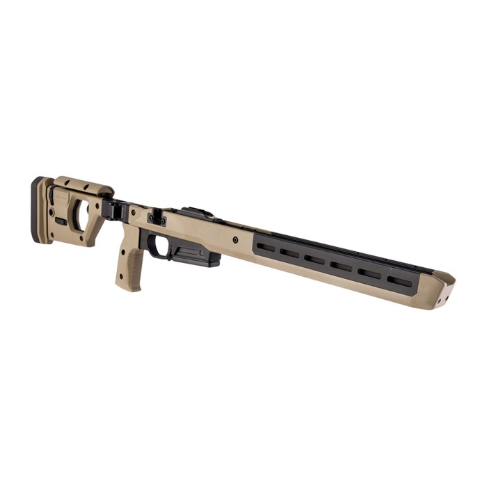 Magpul’s Pro 700 Rifle Chassis kombinerar innovativ ingenjörskonst och precisionstillverkning för att skapa ett fullutrustat precisionsgevärchassi för Remington 700-åtgärder. Baserat på en full billet 6061-T6 aluminiumstruktur, är Magpul Pro 700 Rifle Chassis klätt i Magpul-polymer för komfort, ljuddämpning och ergonomi.