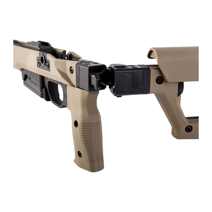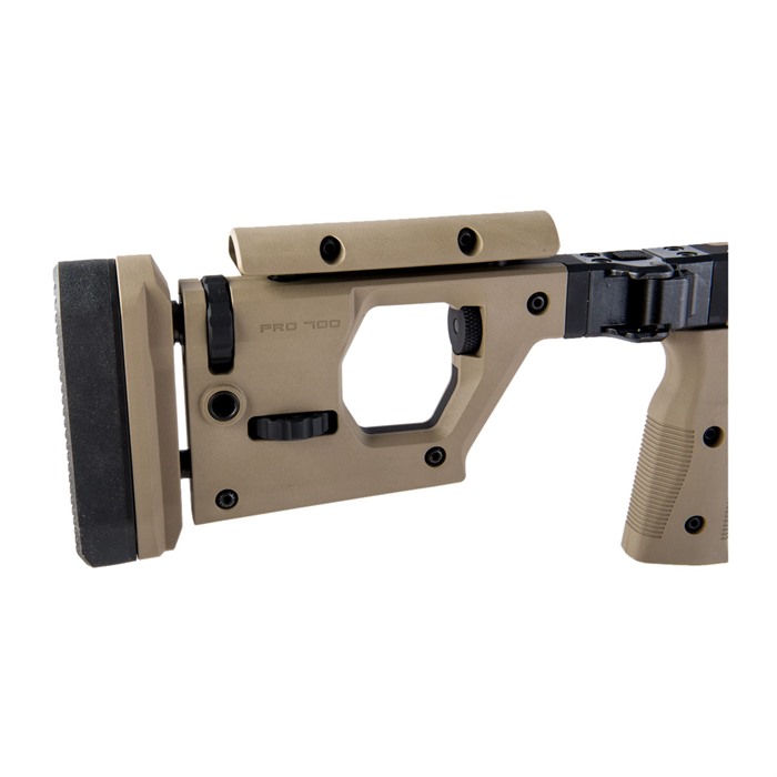 Den stora avtryckarskyddet på Pro 700 accepterar de flesta fabriks- och eftermarknads böjda eller platta avtryckare och kan användas med handskar. Magpul Remington 700 Pro Chassis passar upp till en MTU-loppkontur och finns i svart, flat dark earth och od green. Remington 700 Pro Chassis skulle vara en fantastisk uppgradering för ett befintligt vapen, eller för din nästa byggnation!