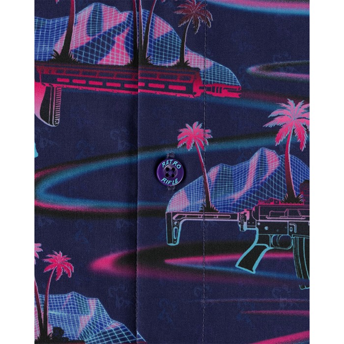 Retro Rifle kortärmad button down skjorta är tillverkad av 97% polyester och 3% spandex, vilket ger en fantastisk passform och rörelsefrihet.