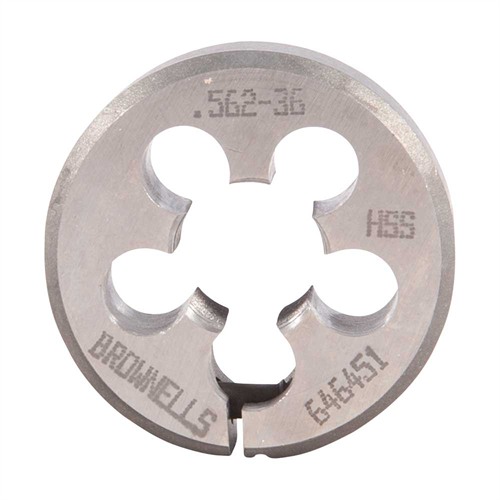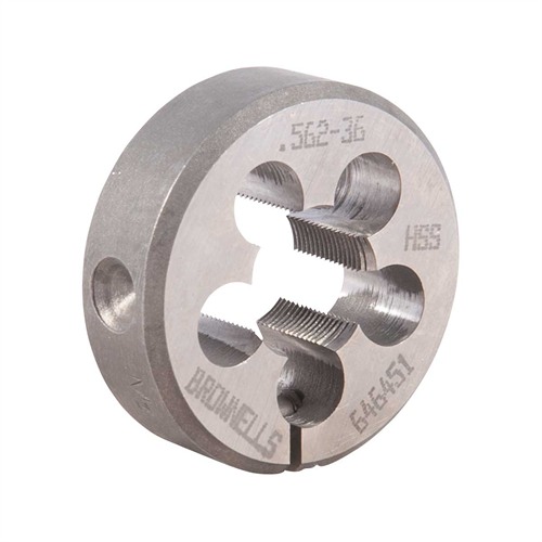 REVOLVER BARREL/FRAME DIES The Brownells Revolver Barrel/Frame Dies are precision tools designed for gunsmiths to accurately thread revolver barrels and frames, ensuring a secure and proper fit. Crafted from high-speed steel, these dies offer durability and maintain sharp threading capabilities over extended use. Key Features Material: High-speed steeL Compatibility: Specifically designed for Smith & Wesson® K Frame revolvers Application: Essential for rebarreling projects, whether installing factory replacements or custom barrels Threads: 5/40"-36 TPI Outside Diameter: 1" These dies are indispensable when rebarreling, as they ensure precise threading, maintaining the revolver's performance and safety standards. Incorporating the Brownells Revolver Barrel/Frame Dies into your gunsmithing toolkit provides the accuracy and reliability needed for professional-grade revolver maintenance and customization.
