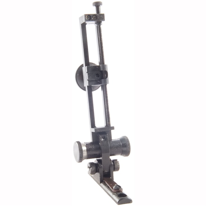 Named after the famous range on Long Island that hosted many long-range rifle competitions in the 1870s and ‘80s, the Creedmoor ladder-type sight is fully adjustable for windage and elevation and works equally well on cartridge rifles and muzzleloaders. Sight is precision machined from steel and attaches to tang with supplied setscrews and folds down when not in use. The Universal model is available in middle-range 2" and long-range 3" heights. The windage adjustment mechanism is on the eyepiece, allowing the eyepiece to dropped close to the base for close-in shots. The Soule model provides maximum adjustability to fit any hunting or target shooting conditions. Elevation is adjustable in precise increments of 1 MOA, and one full turn of the windage knob moves the point of aim left or right by 2½ MOA in ½ minute increments. Large knurled knob at the sight base allows fast, accurate return to center or previous setting. Choice of Short, Middle, and Long Range models. The “Goodwin” style sight was a popular sight for long range shooters in the late 1800s. The “flag” position allows for a very wide windage adjustment range of 1.26”. The elevation adjustment on the Goodwin has a range of 3.94”. With the Goodwin’s structure, the chamber can be easily accessed for cleaning or inspection. The Goodwin also has a “tilt” screw that allows the staff to be perfectly vertical at all elevations.