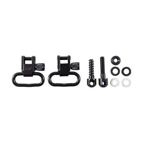 895474001079 Alla stålsvivlar är tillverkade i USA och innehåller inga plastdelar som kan spricka och gå sönder när du minst anar det. Snabbkopplingsfunktionen gör att du kan använda ett och samma bälte för flera gevär. Svivel fästs vid monteringsstuds och låses med en räfflad cylindernyckel för att förhindra oavsiktlig öppning. Finns för 1" eller 1¼" breda bälten. Svivlar finns i par med eller utan monteringsstudsar. Modell GTSW-23 använder en träskruv som främre studs, alla andra set använder en främre studs med maskinskruv och mutter eller specifik hårdvara för att fästa vid ett magasinrör eller pipan.Restorder. Skickas när den finns i lager. Leveranstid ca 4-12 veckor från centrallagret.
