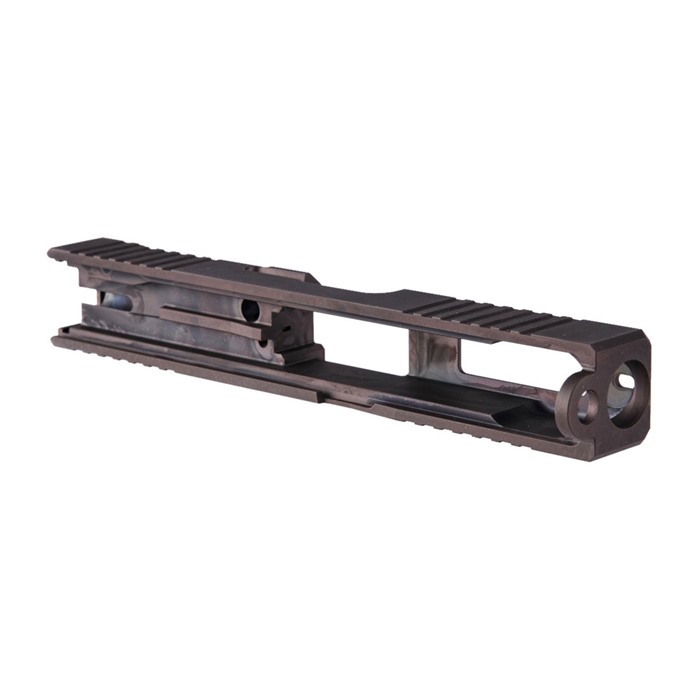Varje RMR-slide för Glock® börjar som en billet av 17-4 rostfritt stål som maskinbearbetas till Glock® fabriksstandarder invändigt, så den accepterar både fabriks- och eftermarknads pipor och interna delar. Varje slide är härdad till Rc 41-44 på Rockwell C-skalan för ökad ytstyrka och slitstyrka. Brownells Brown-slide är en begränsad produktion och när de är slut, så är de slut.