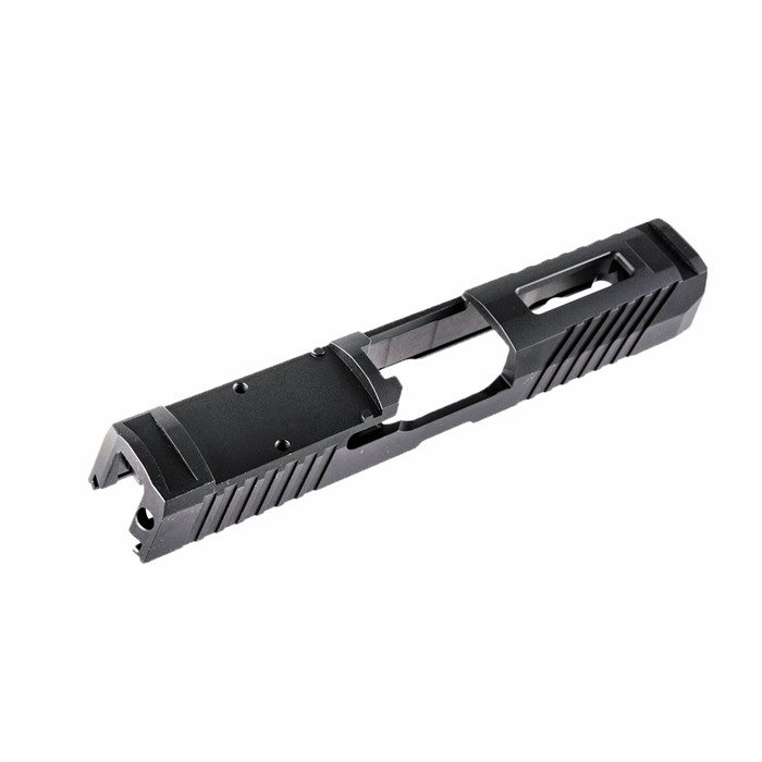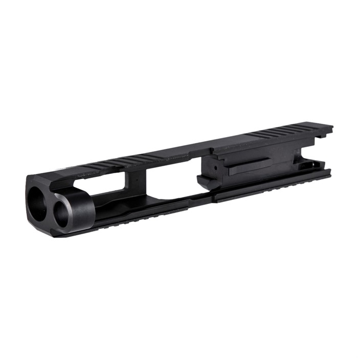Optic-Ready, Ergonomically Enhanced Slide With a Bundle of Custom Features Our RMR Slide for Sig P320 Compact pistols features distinctive, wraparound front cocking serrations that aid in manipulating the slide to check the chamber or clear a jam. (OK, we’ll admit it: the serrations just look cool, too.) It also comes with a pre-cut slot for easy, secure mounting of a Trijicon RMR or Holosun red dot sight. All RMR Slides also have standard Sig Sauer P320 factory front and rear sight dovetails for "iron" backup sights. To get proper co-witnessing with the RMR, you will need to also install suppressor-height iron sights. You can also get your Brownells RMR Slide for Sig P320 Compact with a "window" cutout on top that enhances airflow to keep the barrel cool - ideal for hard-working action competition pistols. Plus, if you have an upgraded barrel with a contrasting finish or a unique exterior pattern (fluting, spirals, "flames," etc.) the window lets you show it off a bit! Each RMR Slide for Sig P320 Compact starts life as a billet of 17-4 stainless steel that is machined to Sig Sauer factory specifications inside, so it’ll fit factory frames and accept factory or aftermarket barrels and factory internal parts. Slides are heat-treated to Rc 41-44 on the Rockwell C scale for added surface hardness and wear resistance. Machined from corrosion-resistant 17-4 stainless steel billet Trijicon RMR mounting slot Also accepts Holosun HE508T, HS507C & HS407C red dot sights Plus factory front/rear sight cuts Available with distinctive top Window cutout or traditional Solid top