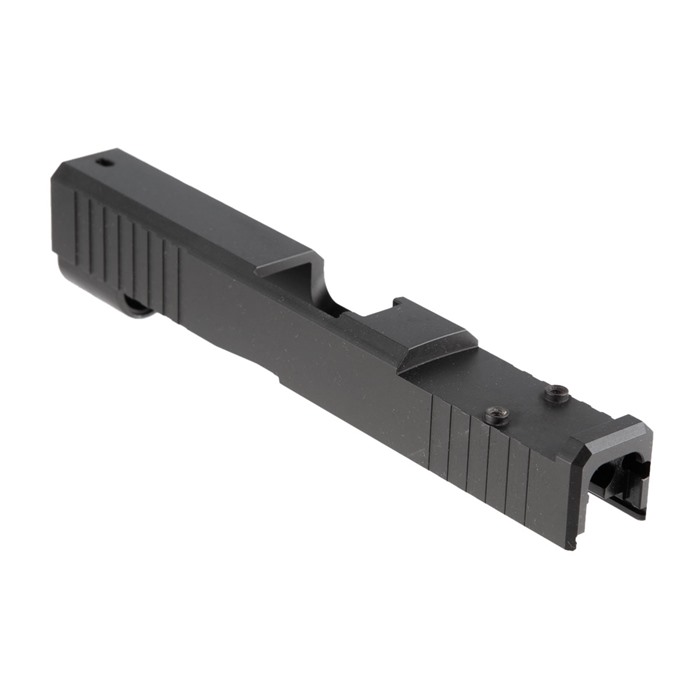 Whether or not you're running a Glock G48, there's no doubt that you could benefit from adding a red-dot sight to your self-defense system. Dot sights have been proven to speed up target acquisition and follow-up shots, and the bright aiming point makes you much more capable in low-light situations. There's just one problem: Glock doesn't provide a milled slide on these platforms. Luckily, we've got the solution in this RMRcc Cut Slide designed for use on the G48. As an added bonus, you can make a G43 into a longslide model by grabbing this slide and a compatible barrel. Based on our ""Front Cut"" slide we designed originally for the Glock G48, this RMRcc Cut Slide includes serrations at the front and rear of the slide for easy manipulation, which is a big help when you're fighting against the stiff recoil spring inside this compact 9mm. Just behind the ejection port, though, you'll see a cutout that's tailor-made to accept the Trijicon RMRcc red-dot sight. When you're not using a red-dot sight, the slide includes a cover plate with a dovetail designed to accept all standard Glock rear sights, and a slot at the front of the slide is compatible with Glock's front-sight tenon. Each Brownells RMRcc Cut Slide is machined from 17-4 stainless steel billet and treated with a matte-black Nitride finish. Internally, the dimensions are identical to Glock's OEM slides, so you can put factory Glock parts into the slide in order to build your complete gun. Note: this RMRcc Cut Slide includes the slide only. Consumers are responsible for either retaining the factory barrel and slide internals or finding new components to finish the slide. This slide does not require the use of a firing-pin channel liner.