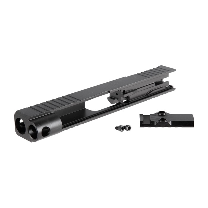 Varje Brownells RMRcc Cut Slide är maskinbearbetad från 17-4 rostfritt stål och behandlad med en matt svart Nitride-yta. Internt är dimensionerna identiska med Glocks OEM-slides, så du kan sätta fabriksdelar från Glock i sliden för att bygga din kompletta pistol.