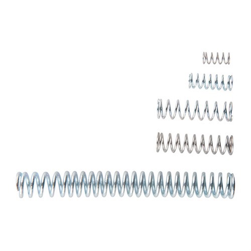 Detta Rossi ’92 fjädersats är tillräckligt enkel för nybörjare att installera, men tillräckligt sofistikerad för den professionella vapensmeden att finjustera för individuella gevär. Satsen inkluderar följande funktioner: Huvudfjäder som kan justeras till 5 olika spänningar med cirka 8 % förändringar i fjäderspänning mellan inställningarna och möjliggör finjustering av huvudfjäderspänning för individuella gevär och ammunition. Två olika styrkor av utdragningsfjäder för att göra satsen användbar för både små och stora kalibrar och för att möjliggöra individuell justering. Fjädrarna är zinkbelagda för att motstå korrosion. Fjäderändarna är stängda och slipade fyrkantiga för att sitta platt och kvadratiskt mot andra delar i vapnet. Nylonbussningarna upprätthåller fjädrarnas justering i båda ändar av hammarsupporten, minskar friktion och ger ett enkelt sätt att justera spänningen utan att klippa fjädrar. Delarna är färgkodade och illustrerade instruktioner ingår för enkel installation.Utgått från Brownells