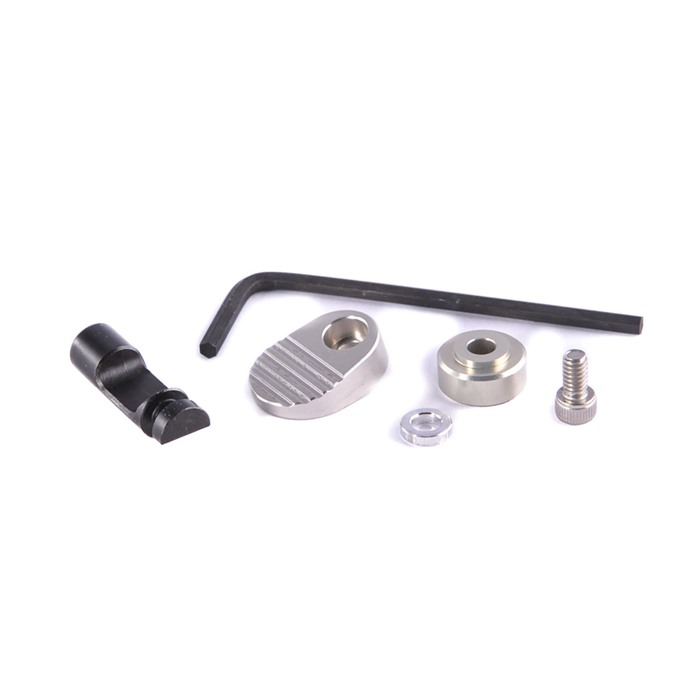 The Tandemkross Titan Extended Magazine Release solves one problem with the Ruger® Mark IV™ 22/45™: the factory mag release button is hard for younger shooters or those with small hands to operate without changing their grip. The Titan magazine release solves that problem! With each “Titan” Extended Magazine Release, Tandemkross provides two buttons. The checkered round button is taller and wider than the factory button, but still small enough so a shooter with larger hands won’t accidentally activate it. The grooved, paddle-style button extends back toward the shooter, so it’s just the ticket for junior shooters. You can even angle the paddle up or down for a custom fit on your Mark IV™ 22/45™. Ideal for young shooters, competition shooters, or shooters with small hands Robust steel and anodized aluminum construction for years of service Deeply textured surfaces for non-slip finger contact Available in Black or Silver - choose the color that matches, or contrasts with, your pistol The Tandemkross "Titan" Extended Magazine Release for Ruger® Mark IV™ 22/45™ is easy for any shooter to install. If you field strip a pistol and follow simple instructions, you can install the Titan. The Titan Extended Magazine Release also fits the following Ruger® pistols: Mark II™ 22/45™ 22/45 Mark III™ 22/45™ 22/45 Mark III™ 22/45™ 22/45 Lite Mark IV™ 22/45™ Mark IV™ 22/45™ Tactical Mark IV™ 22/45™ Lite