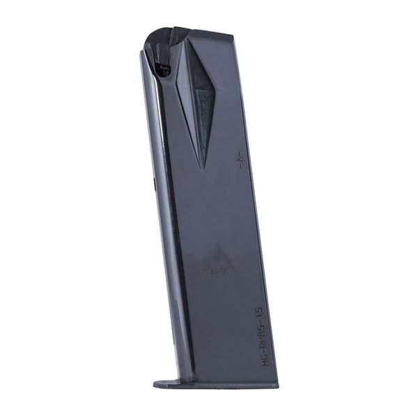 Detta RUGER® semi-auto magasin är designat för modellerna P85, P89, P93, P94 och P95 och erbjuder en kapacitet på 15 skott i kaliber 9mm.