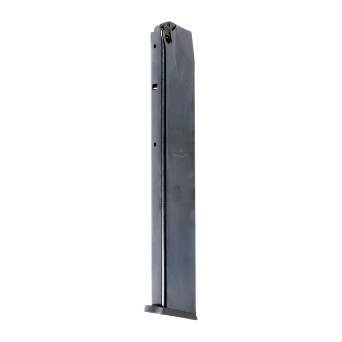 Ruger P-Series stålmagasin är designat för användning med 9mm patroner och har ett magasinshus tillverkat av värmebehandlat kolstål. Magasinet är behandlat med en svart oxidfinish som motverkar korrosion och för tidigt slitage.
