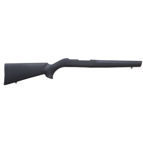 Cushioned Rubber Or Nylon Outer Skin Molded Over A Fiberglass Shell Cushioned rubber outer skin provides non-slip shooting comfort; internal fiberglass body gives solid support, is lightweight and easy to carry. Fully-inletted for a drop-in fit; models available to fit nominal .920" diameter bull barrels (B/B). Straight comb; wide, varmint-style forend with finger grooves, cobblestone finish on grip and forend; dual palm swells and recurve pistol grip make this stock as comfortable to shoot as it is practical. Includes rubber recoil pad, and front and rear sling studs.