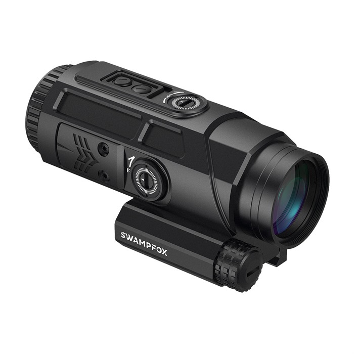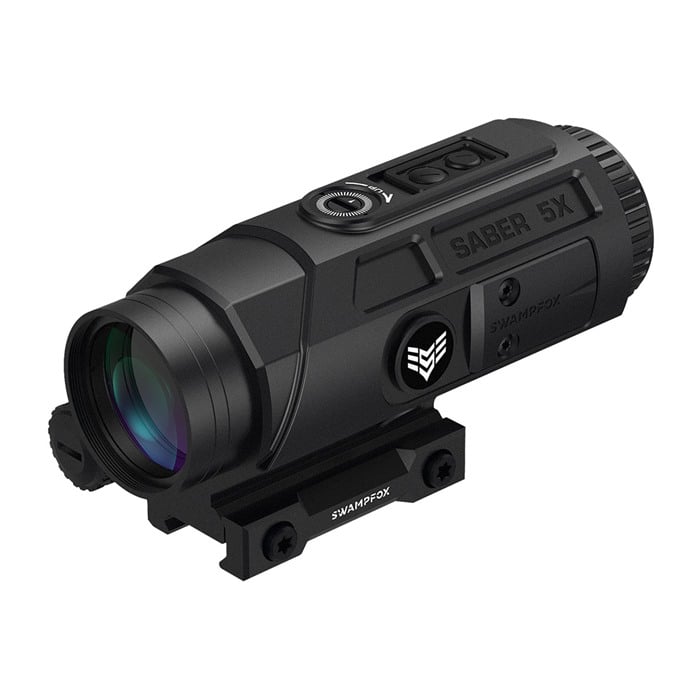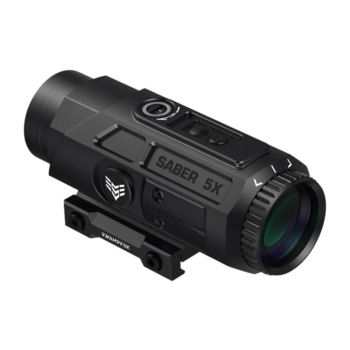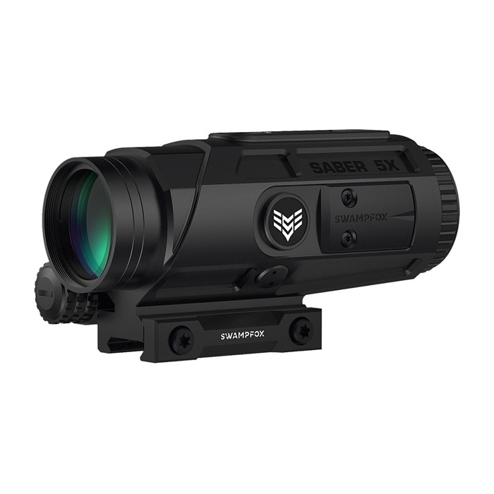 Saber is the most immersive 5x prism scope on the market, featuring a true ten-degree field of view and fast, forgiving eye box. Versatility is key with the integrated ambidextrous 90° sidecar mounts for our Sentinel dot sight, giving you the ability to transition from 1x to 5x at rapidfire speed. Don't let the size fool you, Saber is the same weight as an LPVO, but provides a more durable body with a superior sight picture. Illumination is available in red or green, with “Shake ‘N Wake” motion sensing auto on/off and all the other perks you’ve come to expect from Swampfox prism scopes. Go big or go home with the Saber 5x!