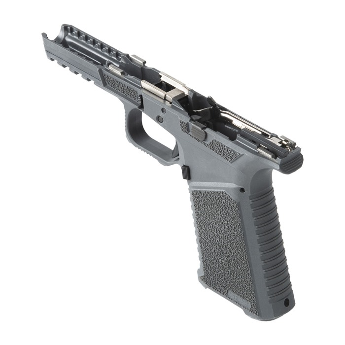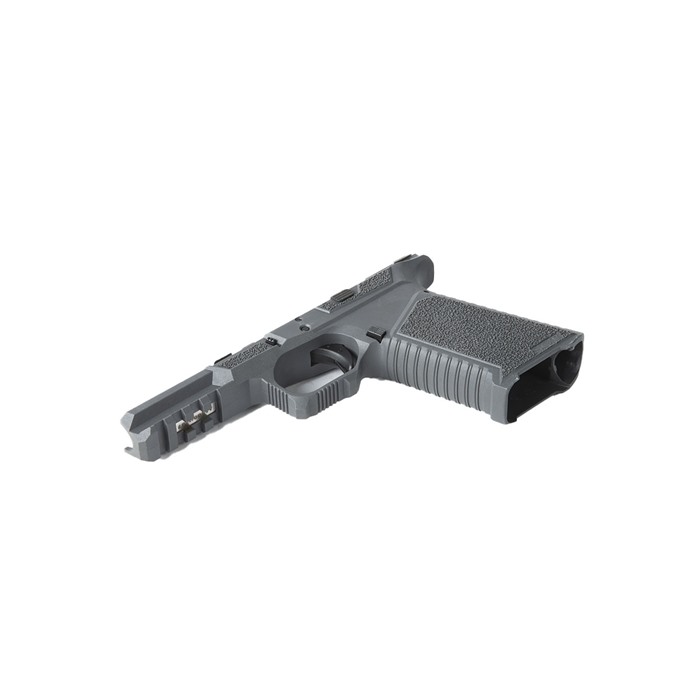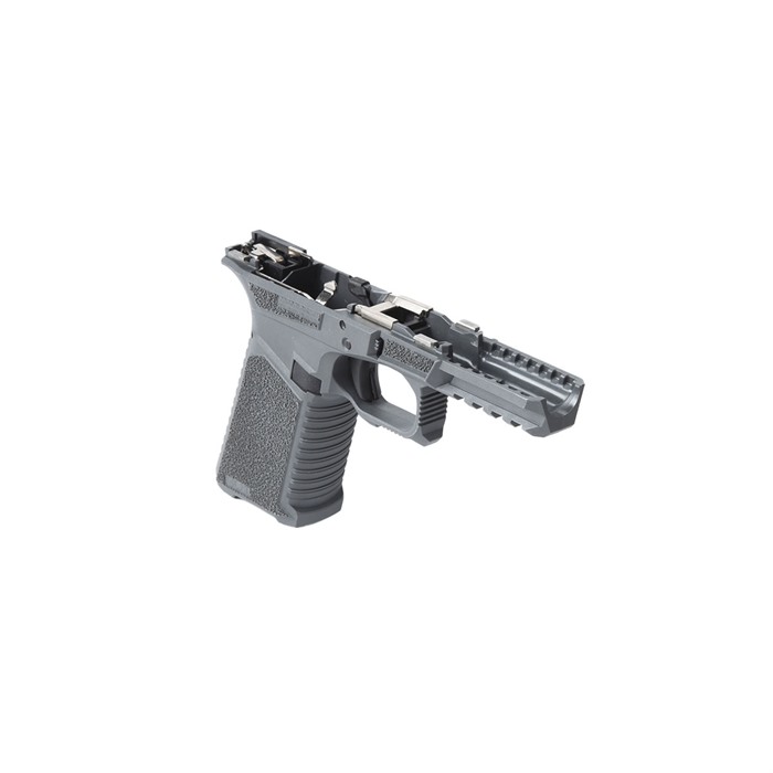 This SCT Manufacturing GLOCK™ Compatible Full Size Assembled Frame is going to change the way you build pistols. It is the only frame at this price point packed with this level of features. This is a serialized frame with shooter-oriented ergonomics. Polished stainless steel over molded rails that are ready to build. They are made with an industry leading proprietary polymer blend and compatible with Glock Gen 3 17,22, and 31 frames. Each frame is assembled by a certified armorer utilizing SCT Manufacturing lower parts kits which have been tested and proven to meet or exceed OEM specifications. The last step of each frame assembly is function testing utilizing a GLOCK™ factory slide checking for safe operation, striker engagement, trigger pull, & trigger reset ensuring the end user is left with a frame that needs nothing but a slide assembly right out of the box! FEATURES: Fully assembled with SCT Gen 3 17 compatible internals. Serrations and index point on trigger guard to help control recoil Serrations on top of beaver tail reduce glare GEN 5 Style Slide lock Flared mag well Thumb Accelerator pad Advanced contour grip with aggressive texturing Picatinny rail (not a Glock® rail) “MIL-STD 1913 Picatinny” High beaver tail with low profile bore axis Grip angle is the same as Glock® Slide stop guard Larger trigger guard for better access with gloves Recessed contoured mag release area for faster mag changes Multi caliber- Compatible with compact 9mm, 40 cal, 357SIG Mag Well compatibility Frame assembly includes: SCT17 polymer frame, electroless nickel locking block, polished trigger assembly with electroless nickel trigger bar and polymer trigger, standard polymer magazine catch, magazine catch spring, steel trigger pin, steel locking block pin, standard slide lock, slide lock coil spring, polymer trigger housing pin, trigger housing with GEN4 style ejector, standard slide stop assembly & polished 5.5 lb. electroless nickel trigger connector.
