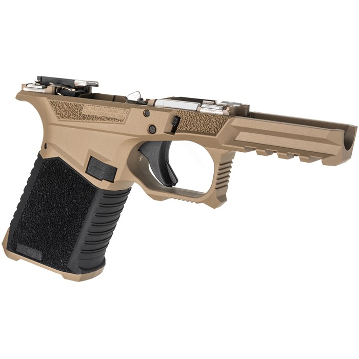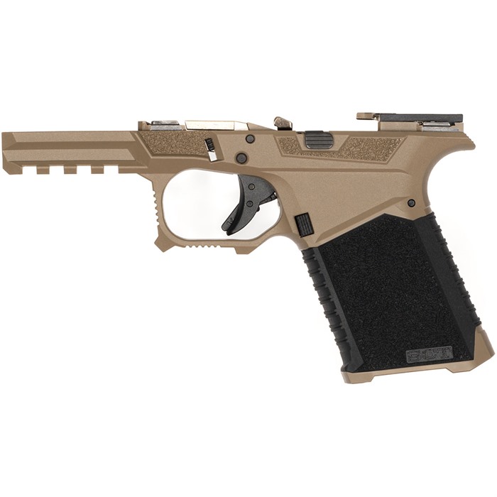 Detta är en serialiserad ram med skytteorienterad ergonomi. Installerade övermoldade skenor är redo att byggas. De är tillverkade med en branschledande egen polymerblandning och är kompatibla med Glock® Gen 3 19, 23 och 32 delar. Varje ram monteras av en certifierad vapensmed med hjälp av SCT Manufacturing:s nedre delskit som har testats och visat sig uppfylla eller överträffa OEM-specifikationer.